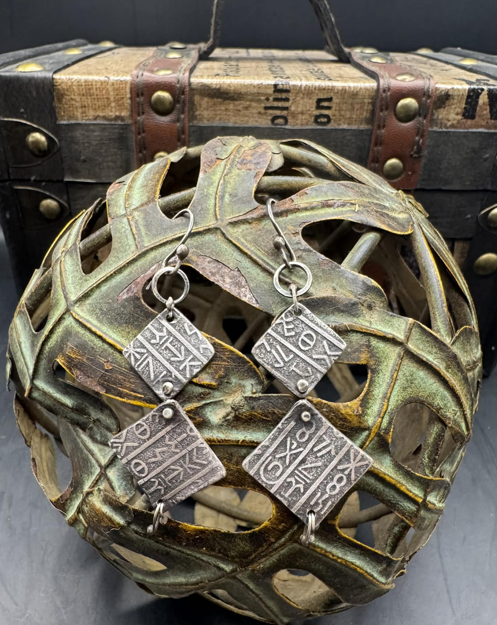 Textured with a hand crafted texture plate made by us. These earrings feature several “ball draw” elements to create an elegant and unique look.